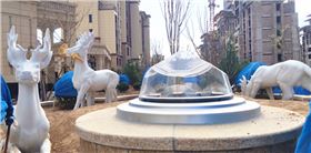 花型和圓形的蹲座與光導(dǎo)管采光系統(tǒng)鉆石型采光器相得益彰,極具藝術(shù)氣息,瞬間就拉升整個(gè)小區(qū)的綠色景觀品位!目前為止,筆者也是第一次見(jiàn)到大理石花型的墩座,高檔小區(qū)配置就是高規(guī)格!