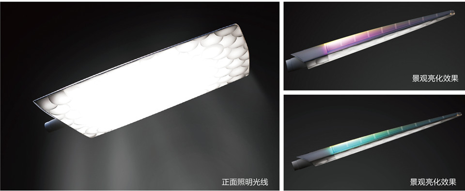 ②除了提供照明光線外,背面還可以發(fā)出彩色光線實現(xiàn)景觀亮化功能;