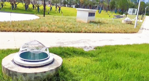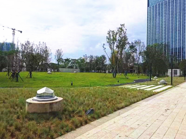 遠(yuǎn)眺鉆石采光器就像一顆顆的磚石鑲在綠化帶里一樣,與綠化帶景色相互交映,組成了一道靚麗的風(fēng)景線!