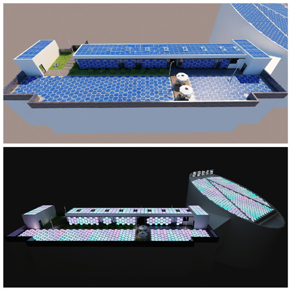 除了發(fā)電,夜間光能寶盒發(fā)電系統(tǒng)還會發(fā)亮,起到景觀亮化的效果,還能和人體進(jìn)行互動,人走到哪里,哪里就亮,而且各個模塊的燈光可根據(jù)實(shí)際需求設(shè)定。